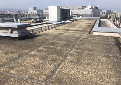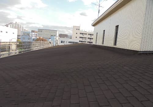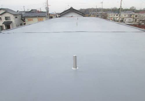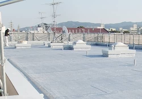下地にシートを貼りつける防水工法。耐候性に優れ、伸縮性を持ち、建物の収縮に追従する優れた防水材です。